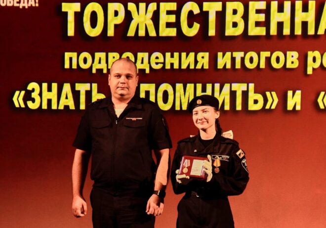 Максим Шелестов от лица регионального отделения «ОФИЦЕРОВ РОССИИ» ХМАО – Югры вручил медаль «Патриот России» воспитаннице Военно-патриотического клуба «Север» Екатерине Волковой.