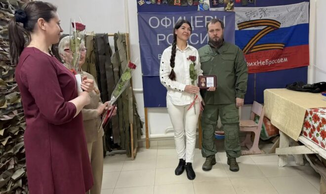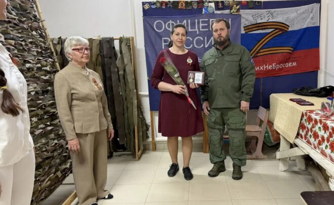 Рафаэль Ковалев вручил награды волонтерам из группы «Массети», которая работает при церкви Пантелеимона Целителя. Волонтеры этой группы в свободное от работы и семейных забот время ежедневно с 2023 года занимаются плетением маскировочных сетей и отправкой их в зону специальной военной операции. Активистки Инна Василькова награждена медалью «Патриот России», а Анифа Кривченко, Валентина Кравченко и Наталья Лукашевич – медалью «Участнику гуманитарной помощи».